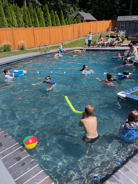 Our birthday party package includes 1.5 hour of swimming followed by 30 minutes of on deck time. Depending upon the time of year this would be outside on deck. Children 6 and under must have a parent in the water with them. This includes 1 lifeguard on duty. Bring your own food, games, toys and fun!